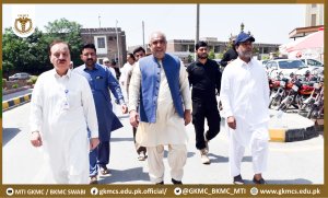 Former Speaker of the National Assembly and Current Member of the National Assembly (MNA), Mr. Asad Qaisar, visited Gajju Khan Medical College (GKMC) and Bacha Khan Medical Complex (BKMC) MTI, Swabi, to review progress on key development projects.